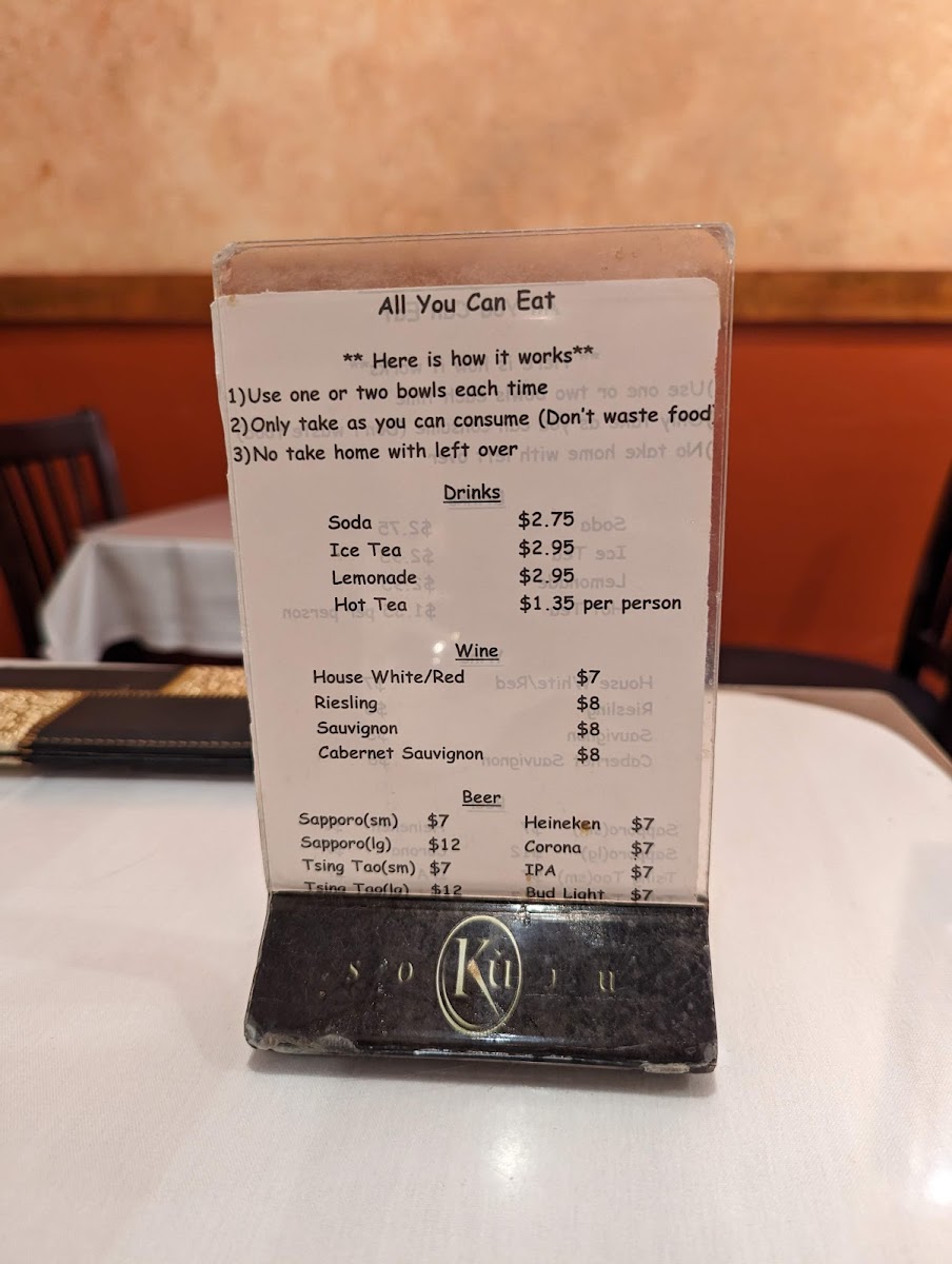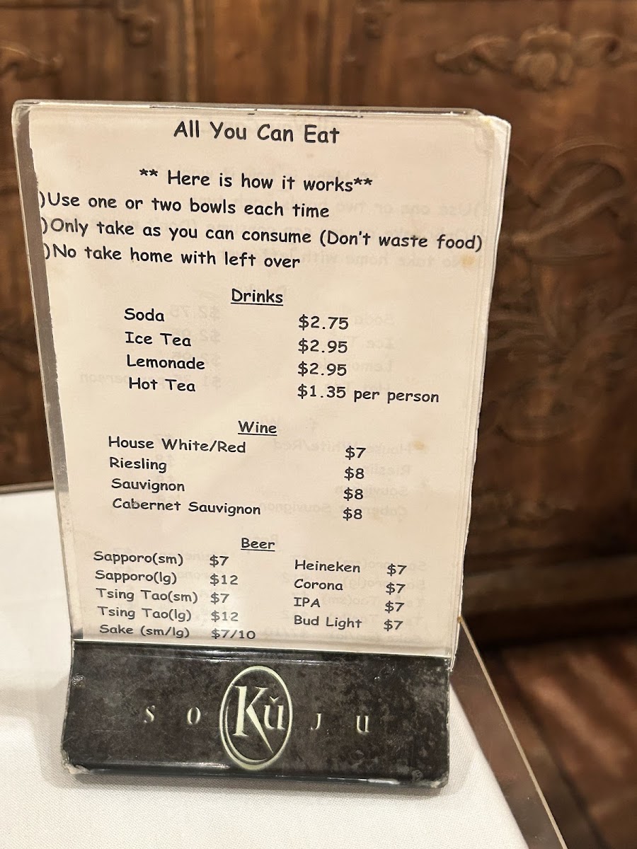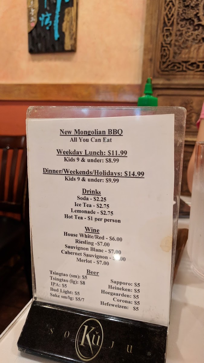 To accompany your savory dishes, New Mongolian BBQ offers a selection of refreshing beverages, including Sapporo and Heineken for just $7. If you're feeling adventurous, why not try the Tsing Tao for $8 or a classic sake at the same price? There's something for everyone to enjoy.